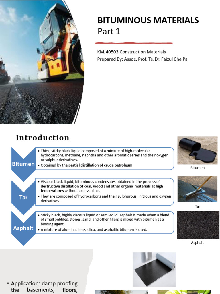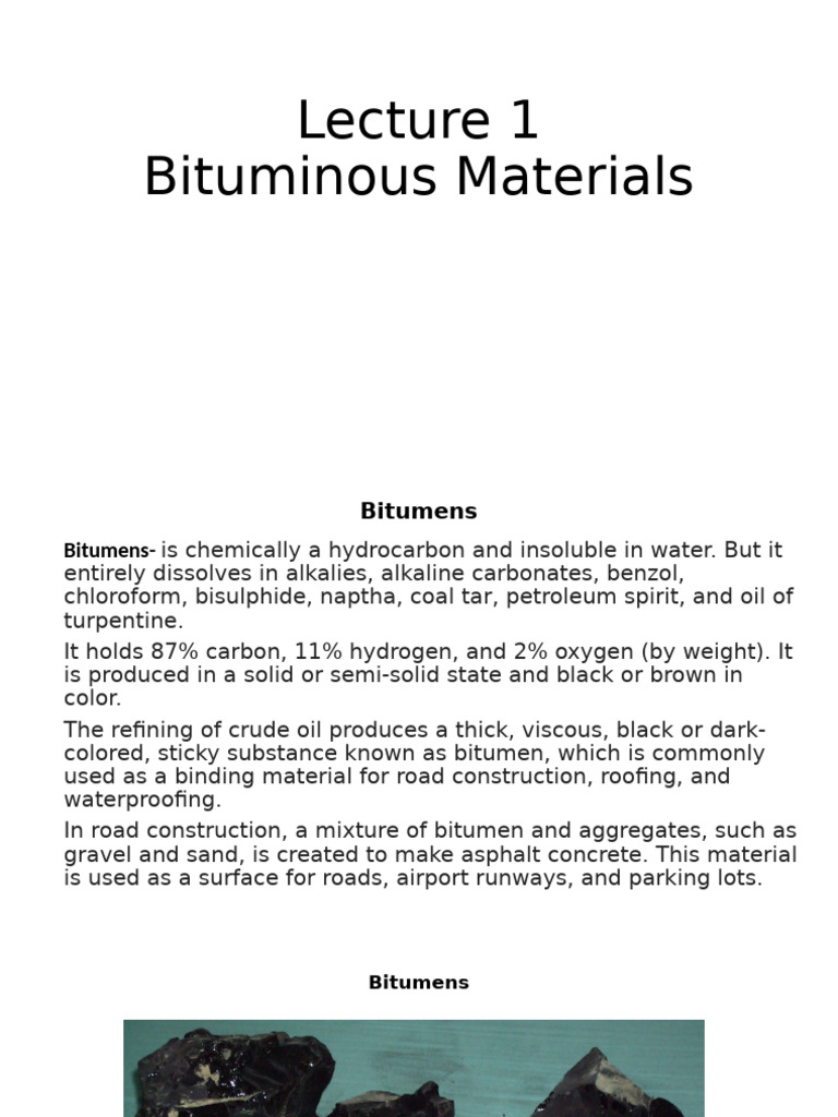 Bituminous Materials: Properties, Usages, and Defects | Lecture notes ...