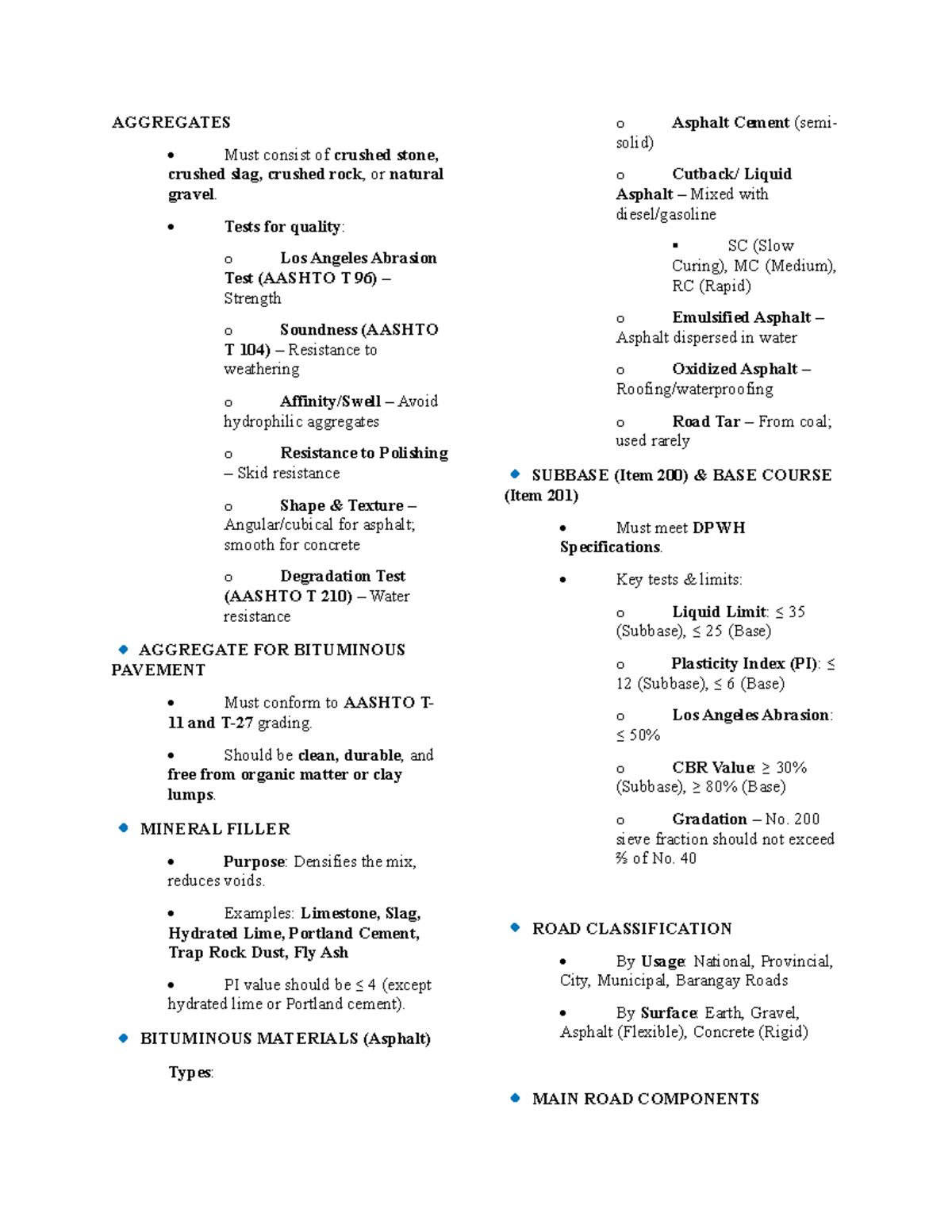 HRE - Lecture Notes on Aggregate and Bituminous Materials - Studocu