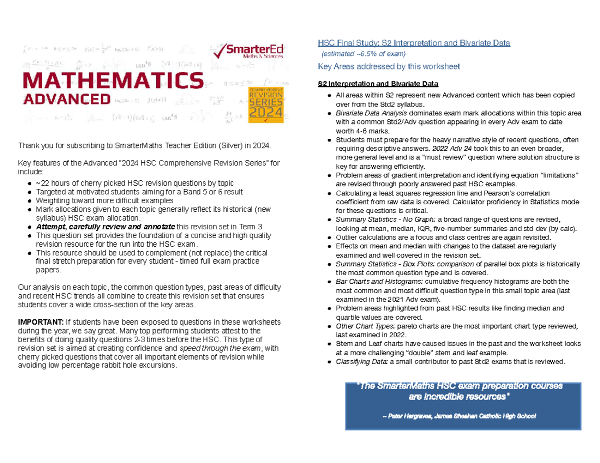 2024 HSC Comprehensive Revision Series: ADV S2 Final Study on Bivariate ...