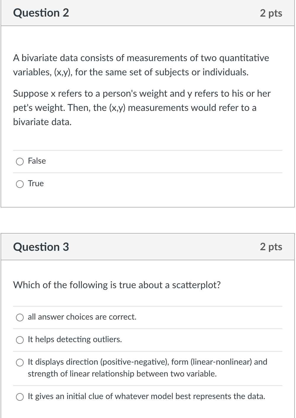 Solved Question 2 2 pts A bivariate data consists of | Chegg.com