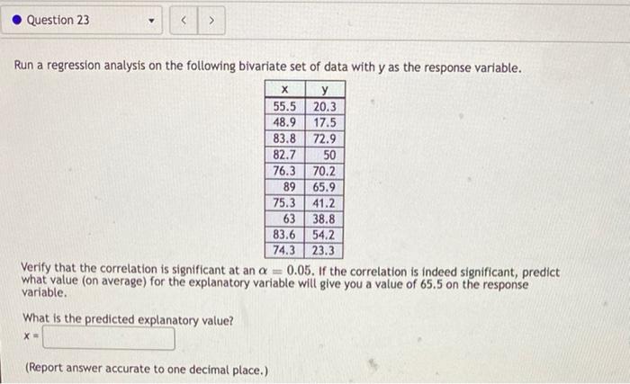 Solved Question 25Here is a bivariate data set in which you | Chegg.com