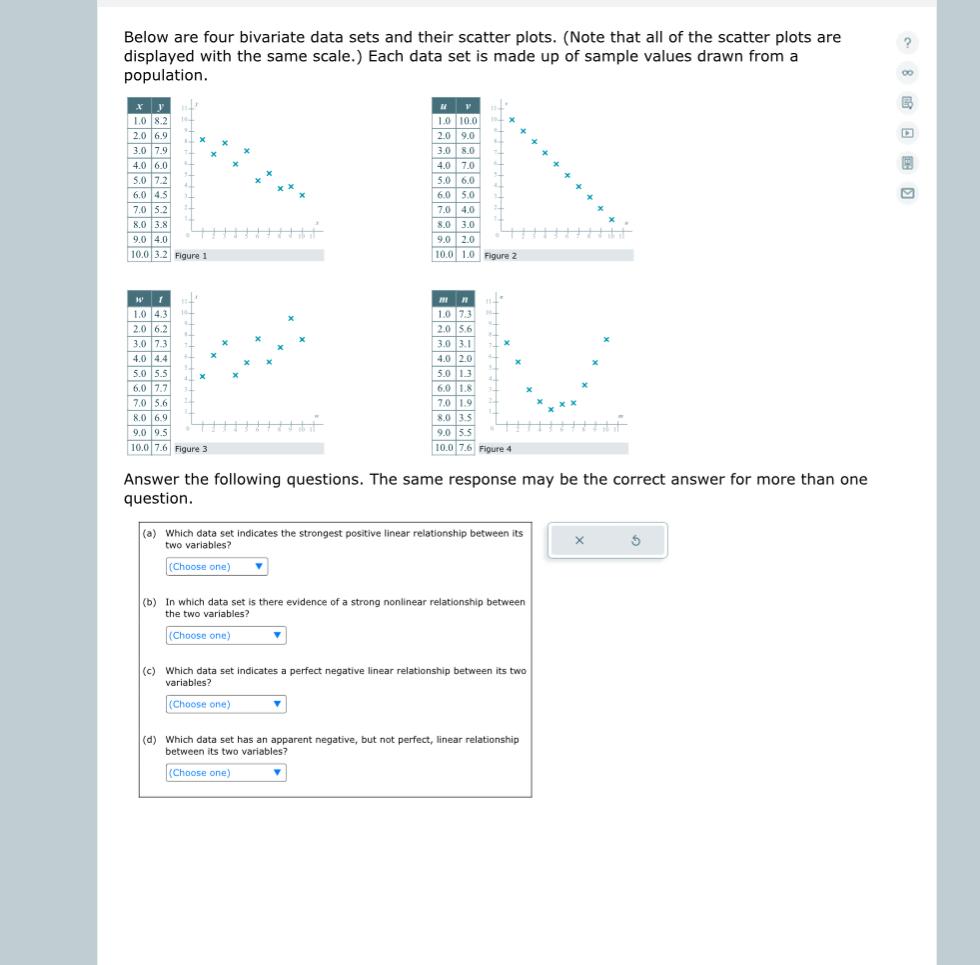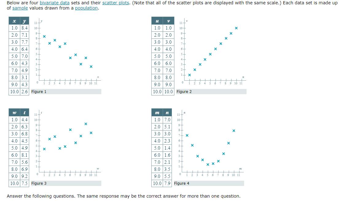 Solved Below are four bivariate data sets and the scatter | Chegg.com