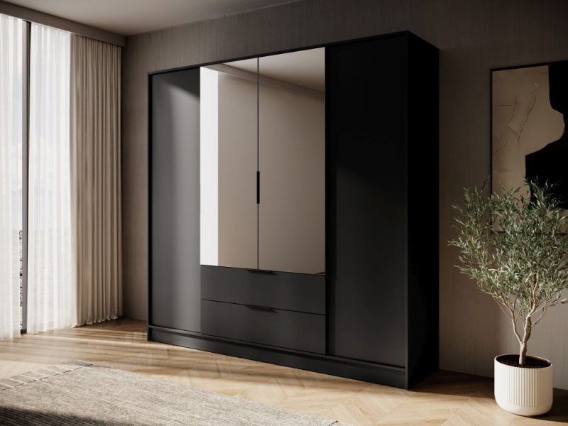 Duża szafa czarna z lustrem TITAN » Meble Arkadius