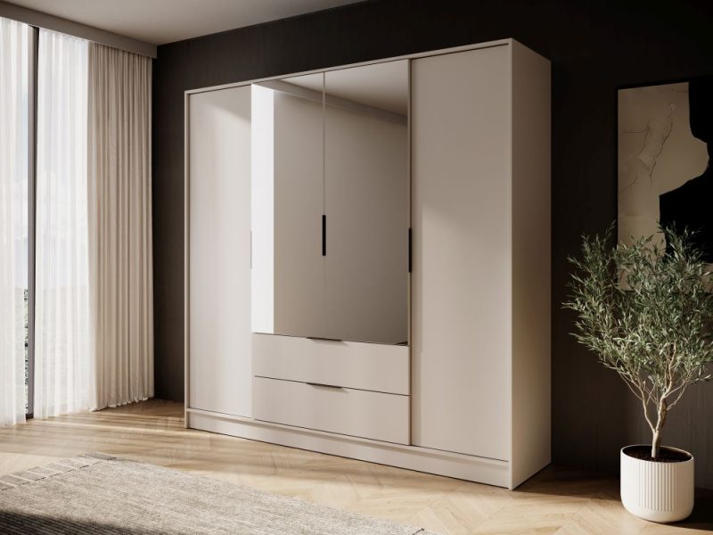 Sypialniana szafa w kolorze kaszmiru z lustrami i szufladami TITAN ...