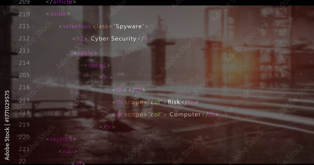 Displaying HTML code overlay blending industrial plant backdrop, with ...