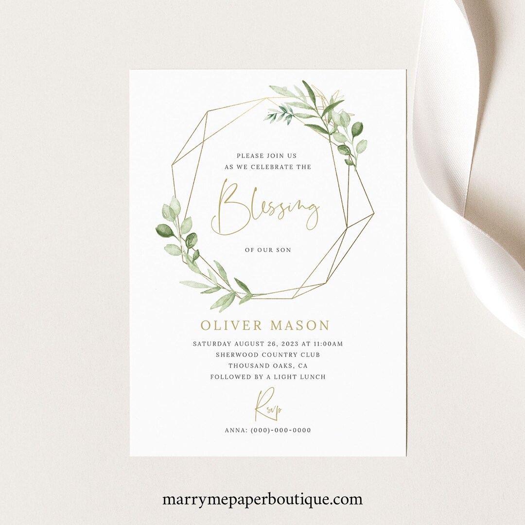 Blessing Ceremony Invitation Template Greenery Hexagonal - Etsy