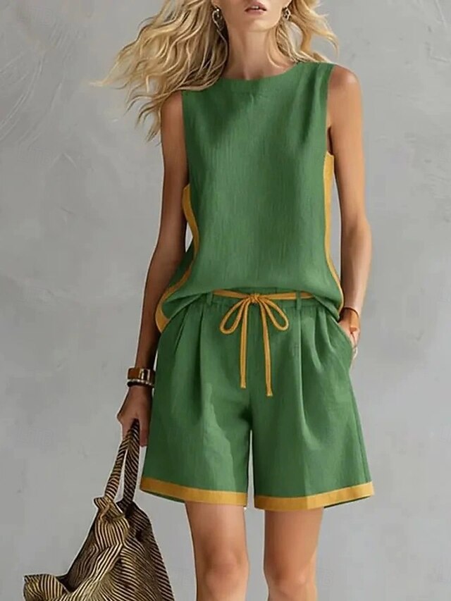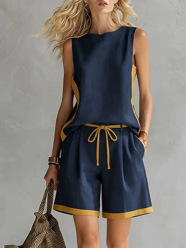 Women's Pants Sets Sleeveless V Neck Solid Color Color Block Fashion ...