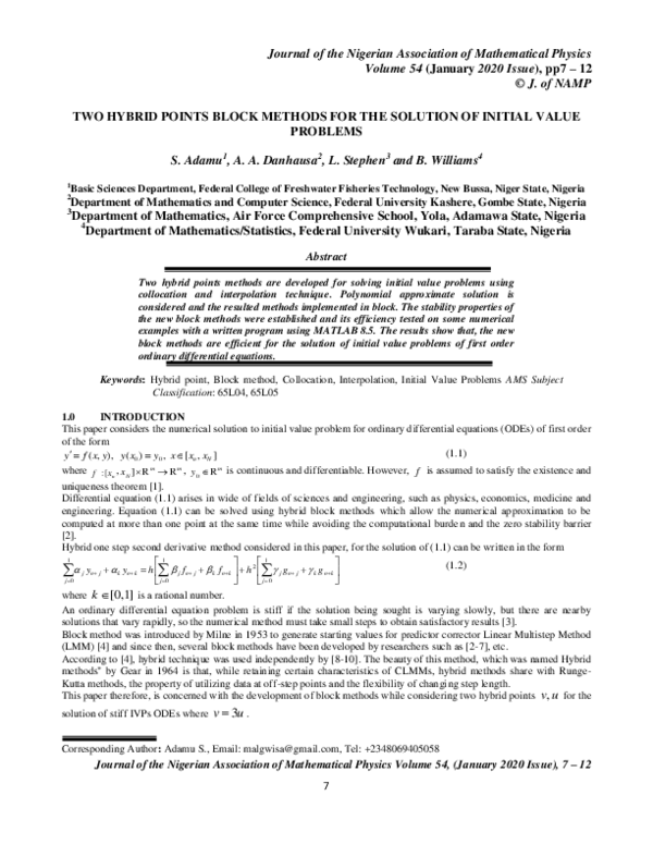 (PDF) TWO HYBRID POINTS BLOCK METHODS FOR THE SOLUTION OF INITIAL VALUE ...