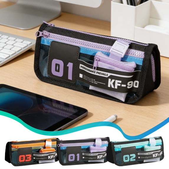 AZXY Cyber-Style Color Block Pencil Case, Functional Cabin Stationery ...