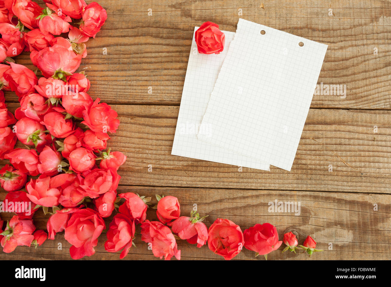 block notes and red roses on wooden background Stock Photo - Alamy