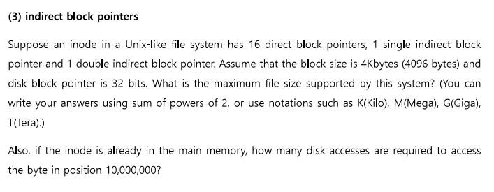 Solved (3) indirect block pointers Suppose an inode in a | Chegg.com