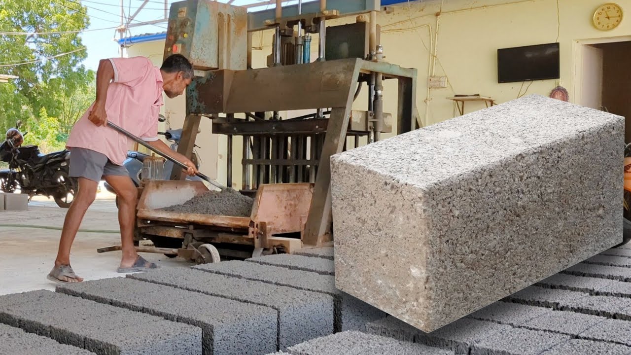 Concrete Block Making Process | Cement Brick Production | Construction ...