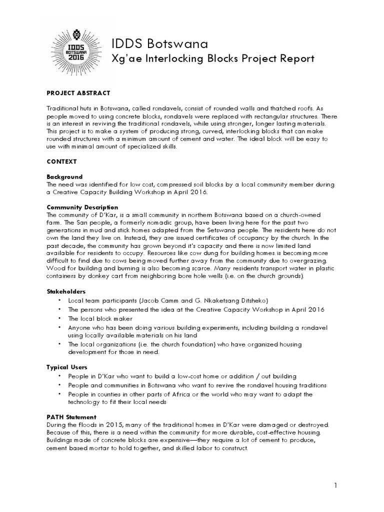 IDDS Botswana XG'AE Interlocking Blocks Report | PDF