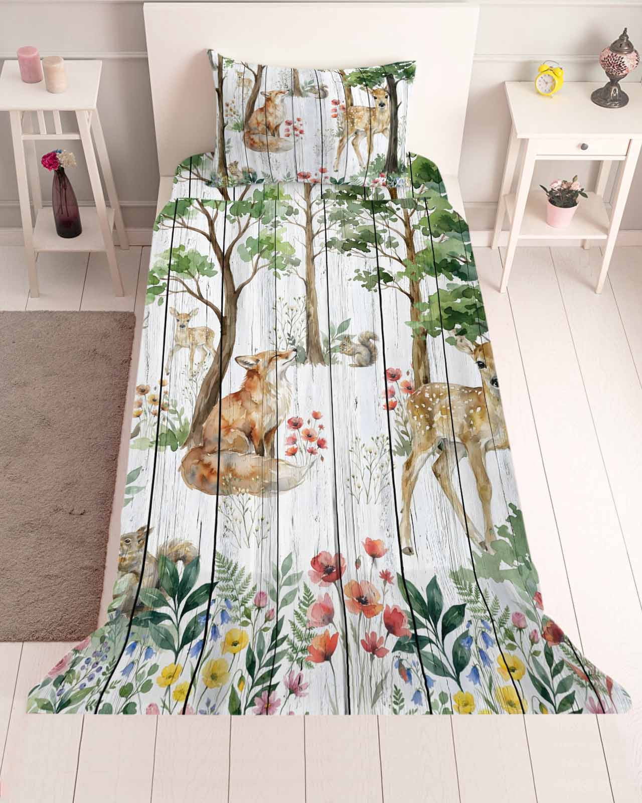 3 Piece Twin Sheet Set Spring Forest Animals Sheets Set for Twin Size ...