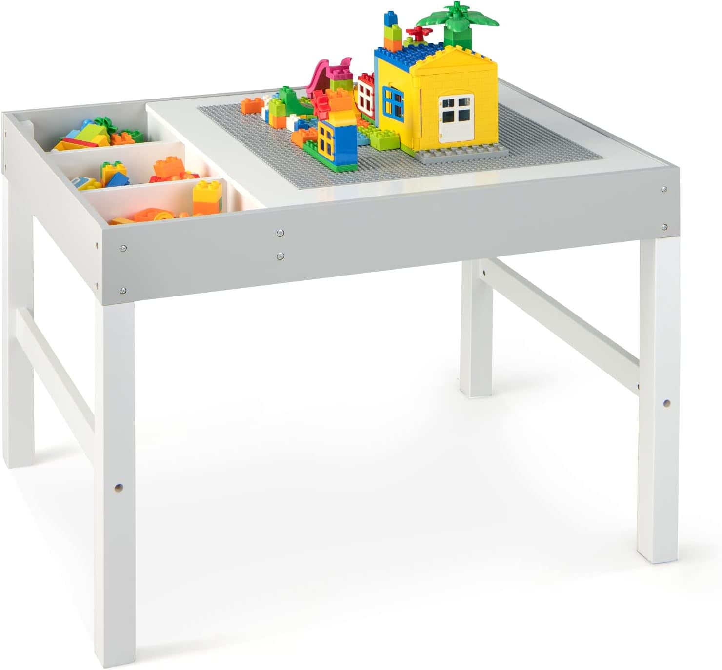 Large 2-in-1 Building Blocks Activity Table with Storage - Kids Nook