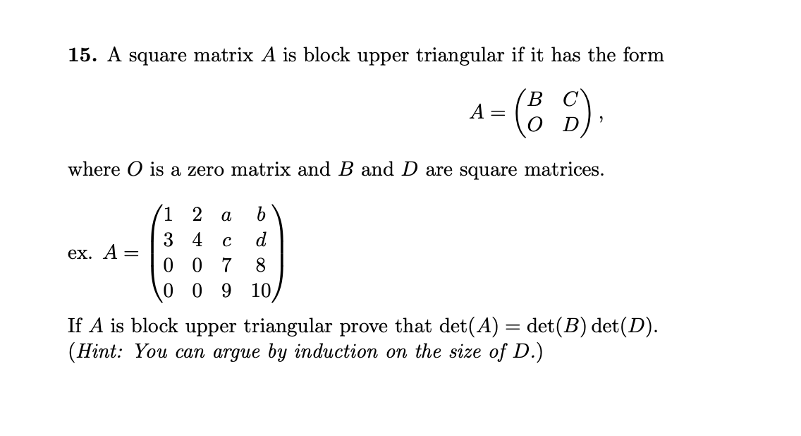 15. A square matrix A is block upper triangular if it | Chegg.com