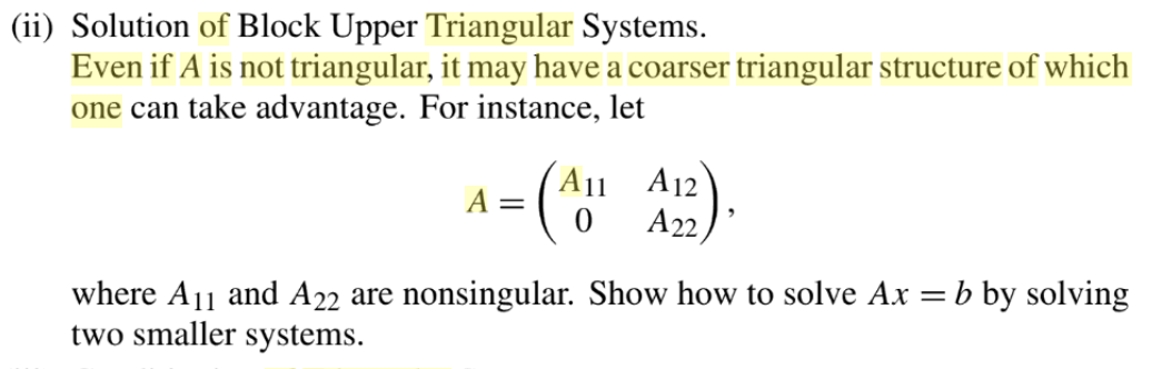 Solved (ii) Solution of Block Upper Triangular Systems. Even | Chegg.com