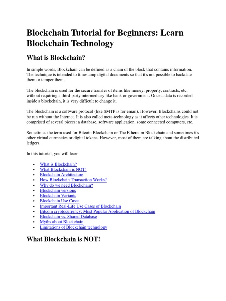 Blockchain Tutorial For Beginners: Learn Blockchain Technology PDF ...