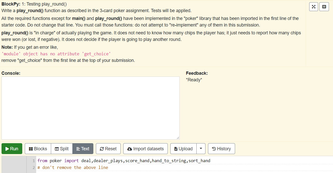 BlockPy: 1: Testing play_round() Write a play_round() | Chegg.com