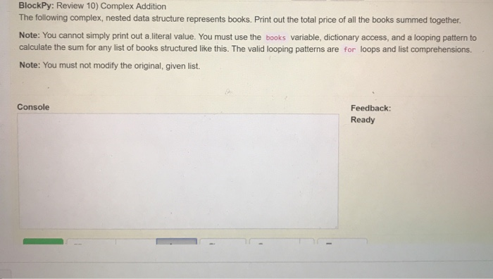 Solved BlockPy: #42.4) Summing LoDoD Use the Loop Summing | Chegg.com