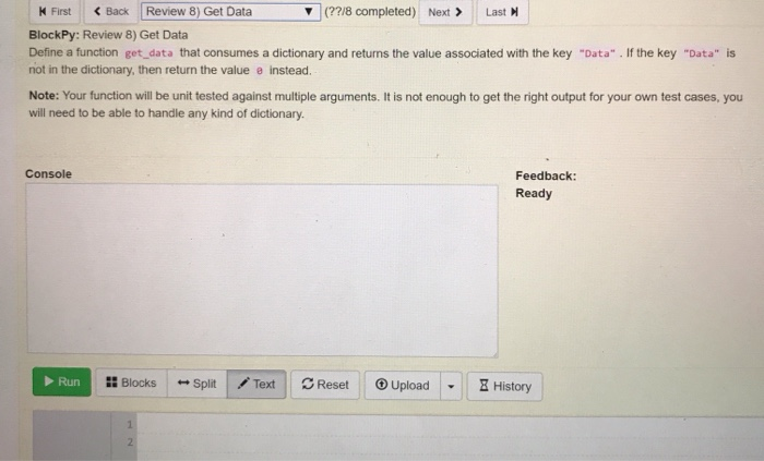 Solved BlockPy: Review 8) Get Data Define a function | Chegg.com
