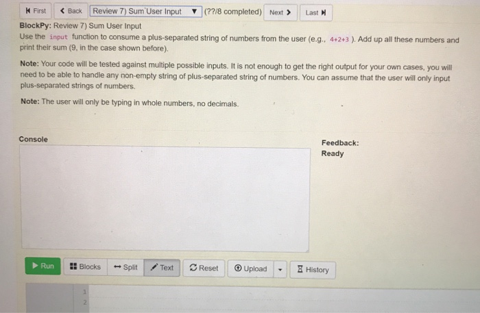 Solved BlockPy: #45.2) While Input Use a while loop to | Chegg.com