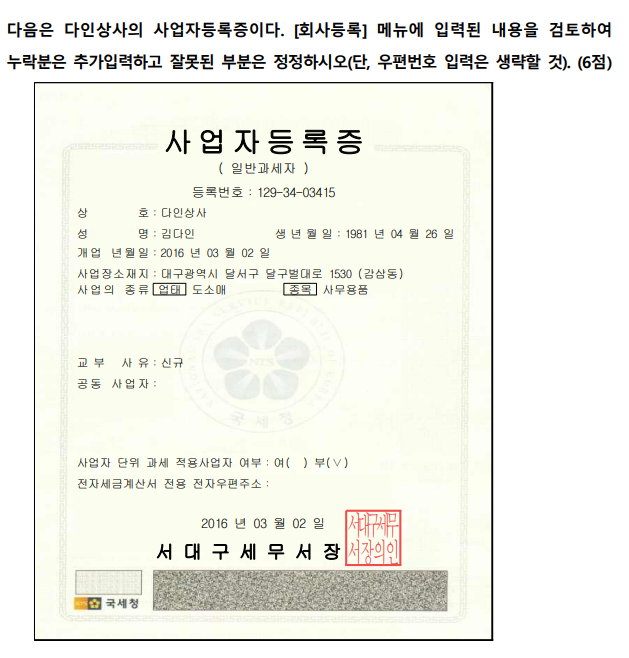 전산회계 2급 제123회 시험 오답정리 : 네이버 블로그