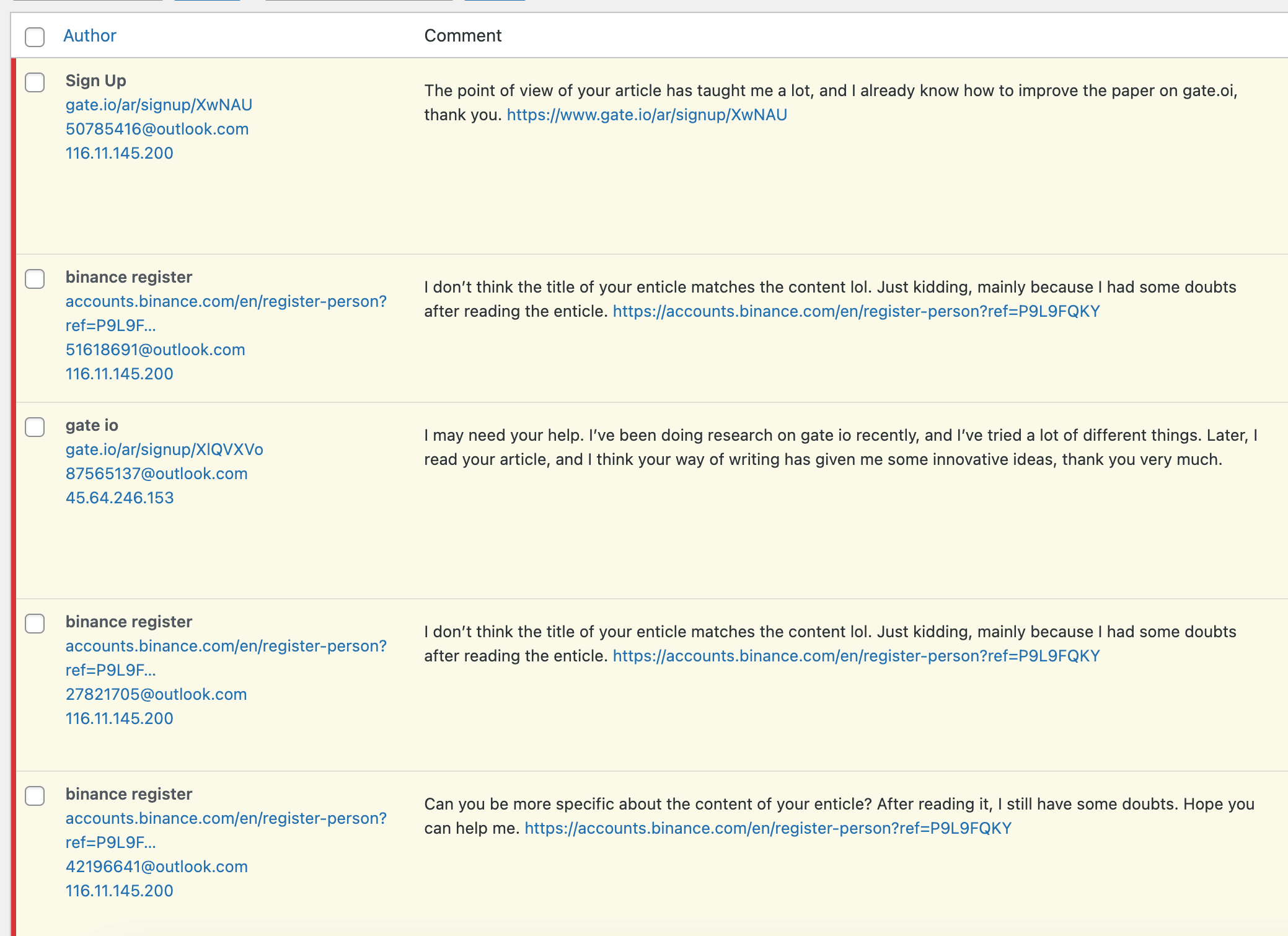WordPress, how to block spam comments from binance and gate.io - Denis ...