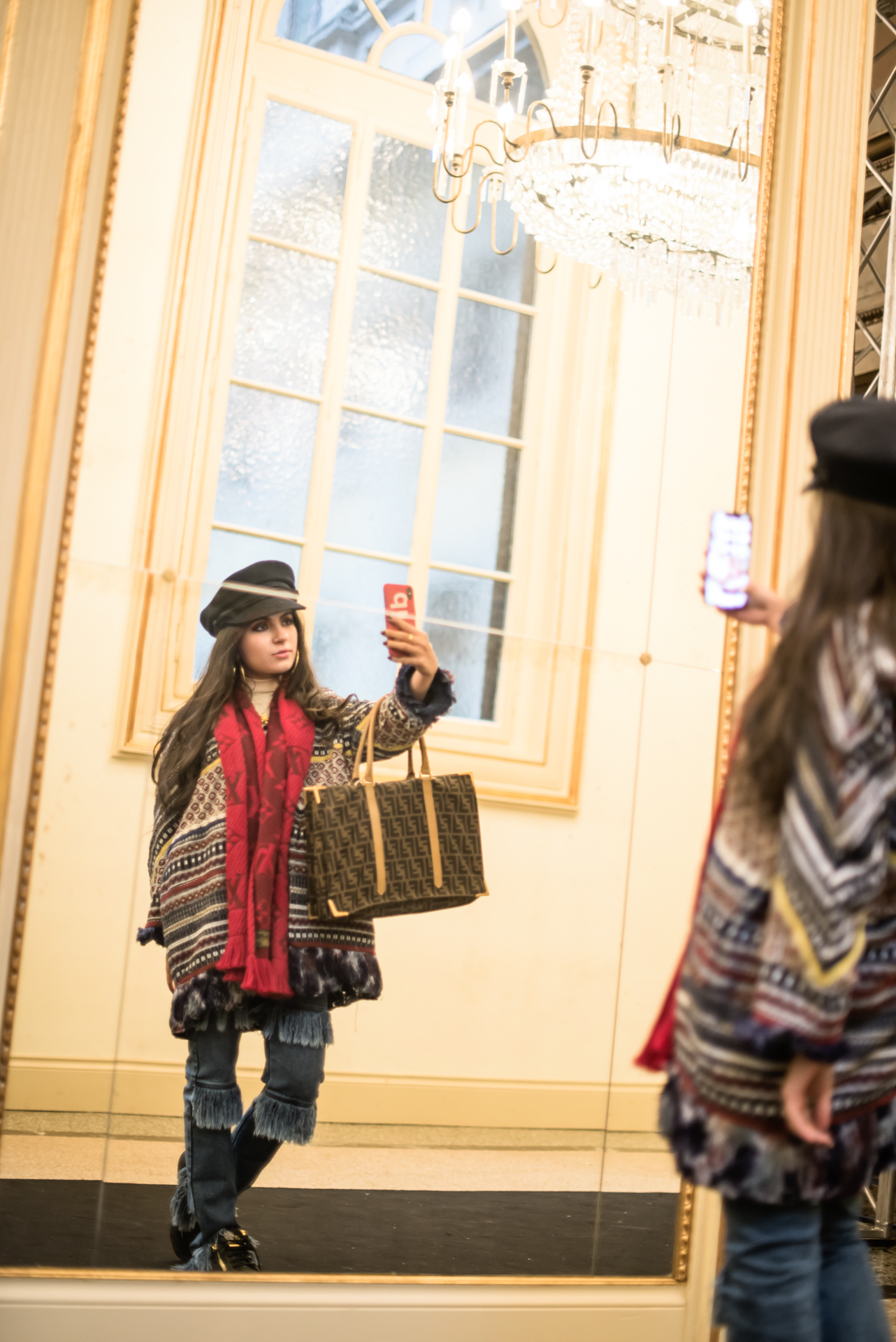 Fashion blogger taking a picture of two clutch bags | Premium Photo