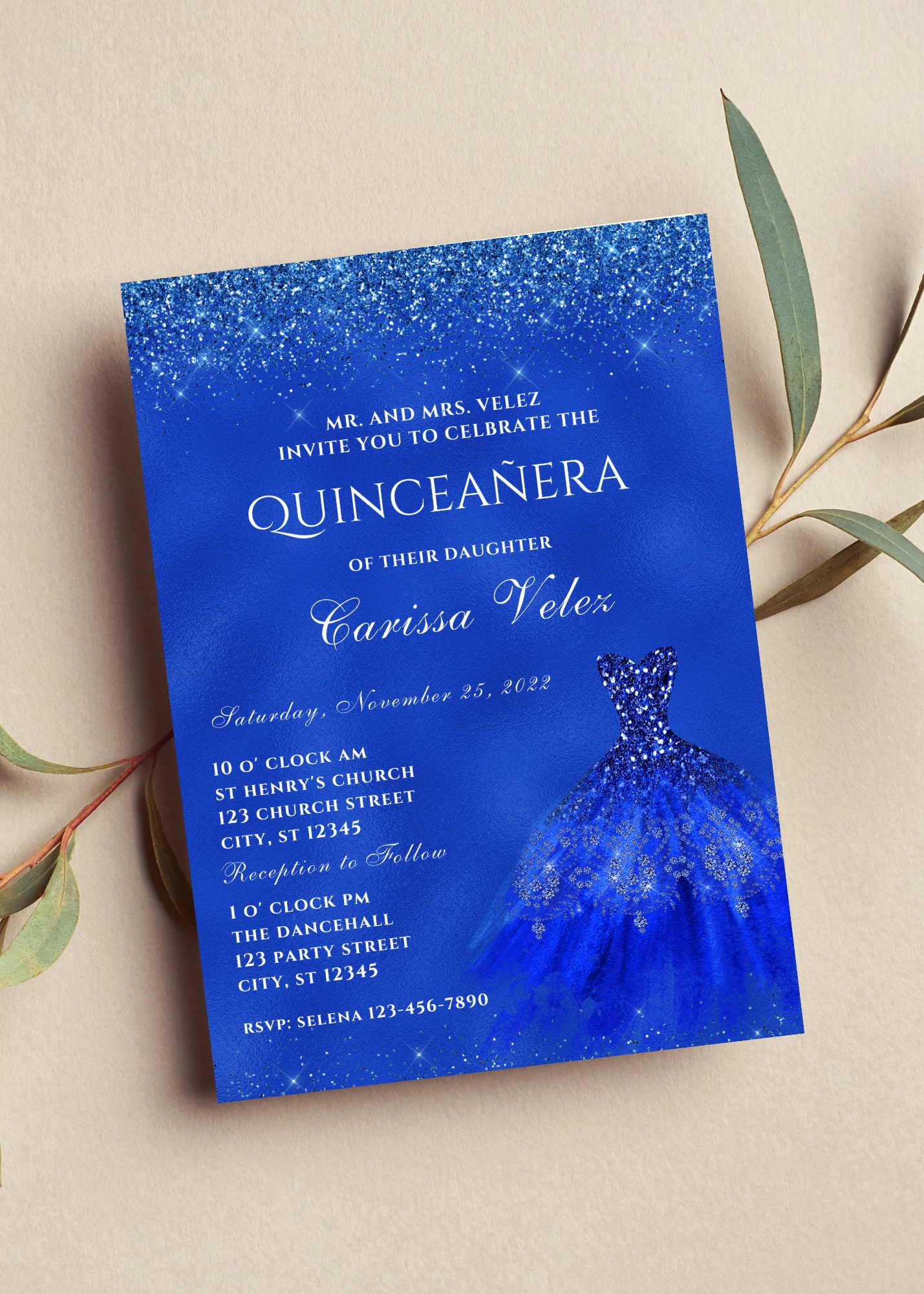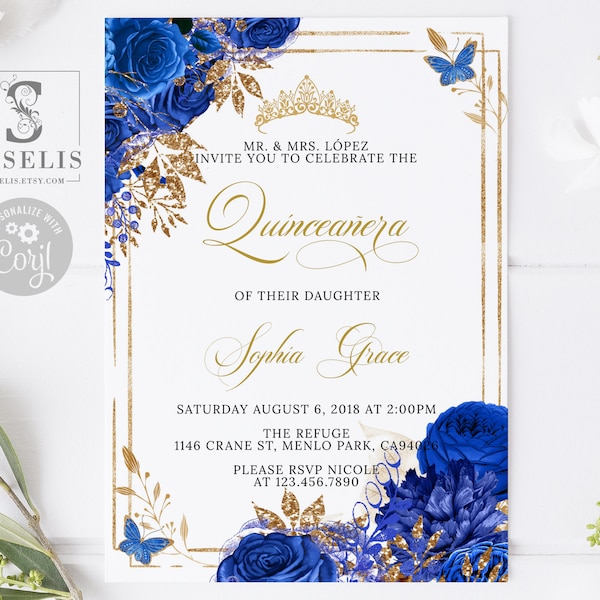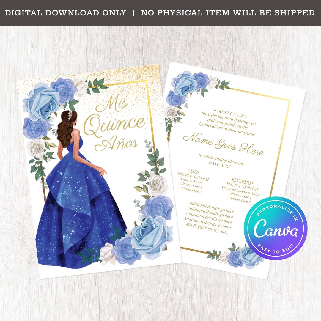 Quinceanera Invitation Royal Blue, Royal Blue Quince, Editable ...