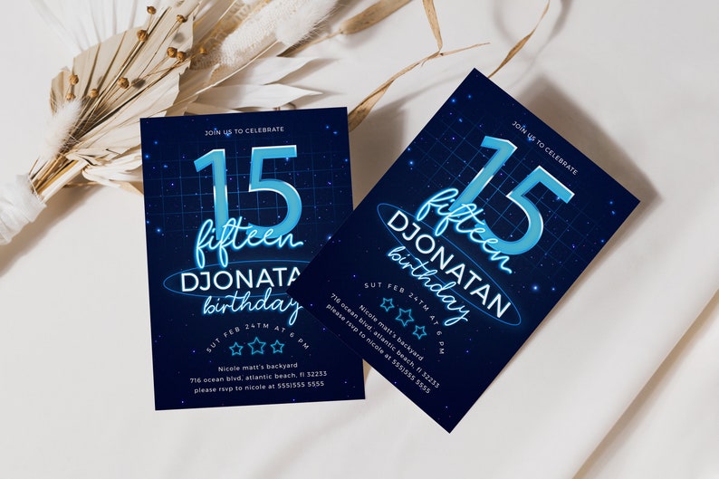 Neon Blue 15th Birthday Invitation | Zazzle