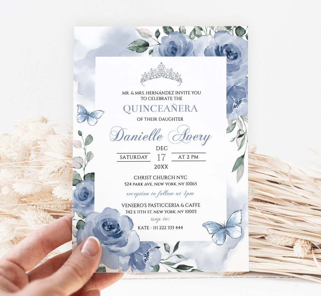 Dusty Blue Quinceañera Invitation: Floral XV Invite (editable Digital ...