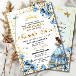 Light blue Floral quinceanera invitation, Quinceanera invitations ...