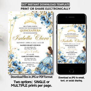 Blue Floral Quinceañera Invitation Template: Editable Sweet 16 Invite ...