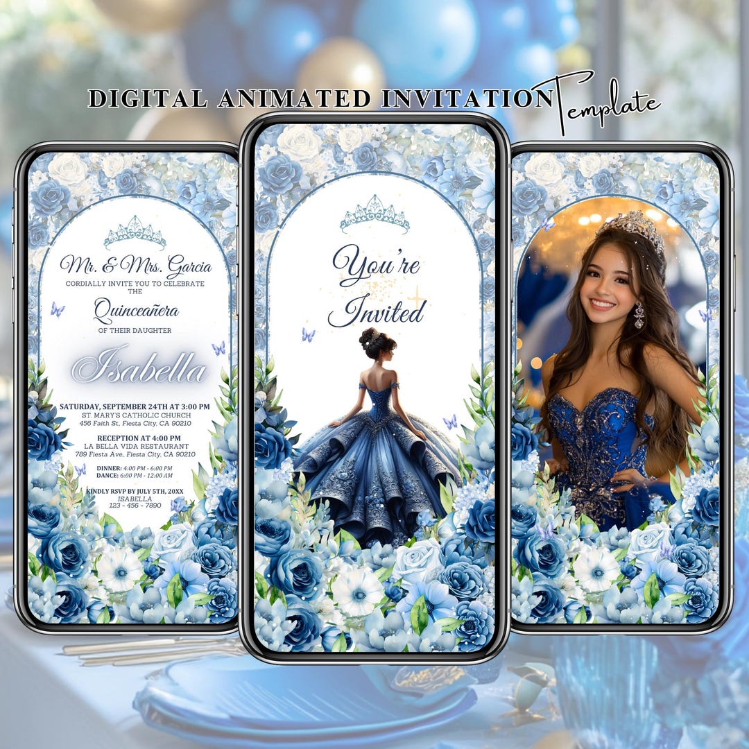Navy Blue Quinceanera Video Invitation: Animated XV Evite (digital) - Etsy