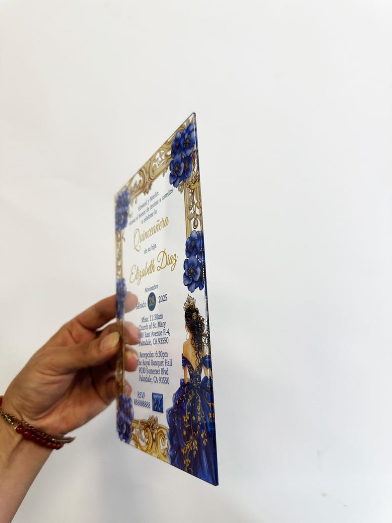 Royal Blue Quinceanera Invitation – Luxury Acrylic Cards for Sweet 16 ...