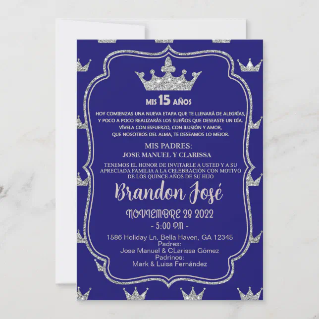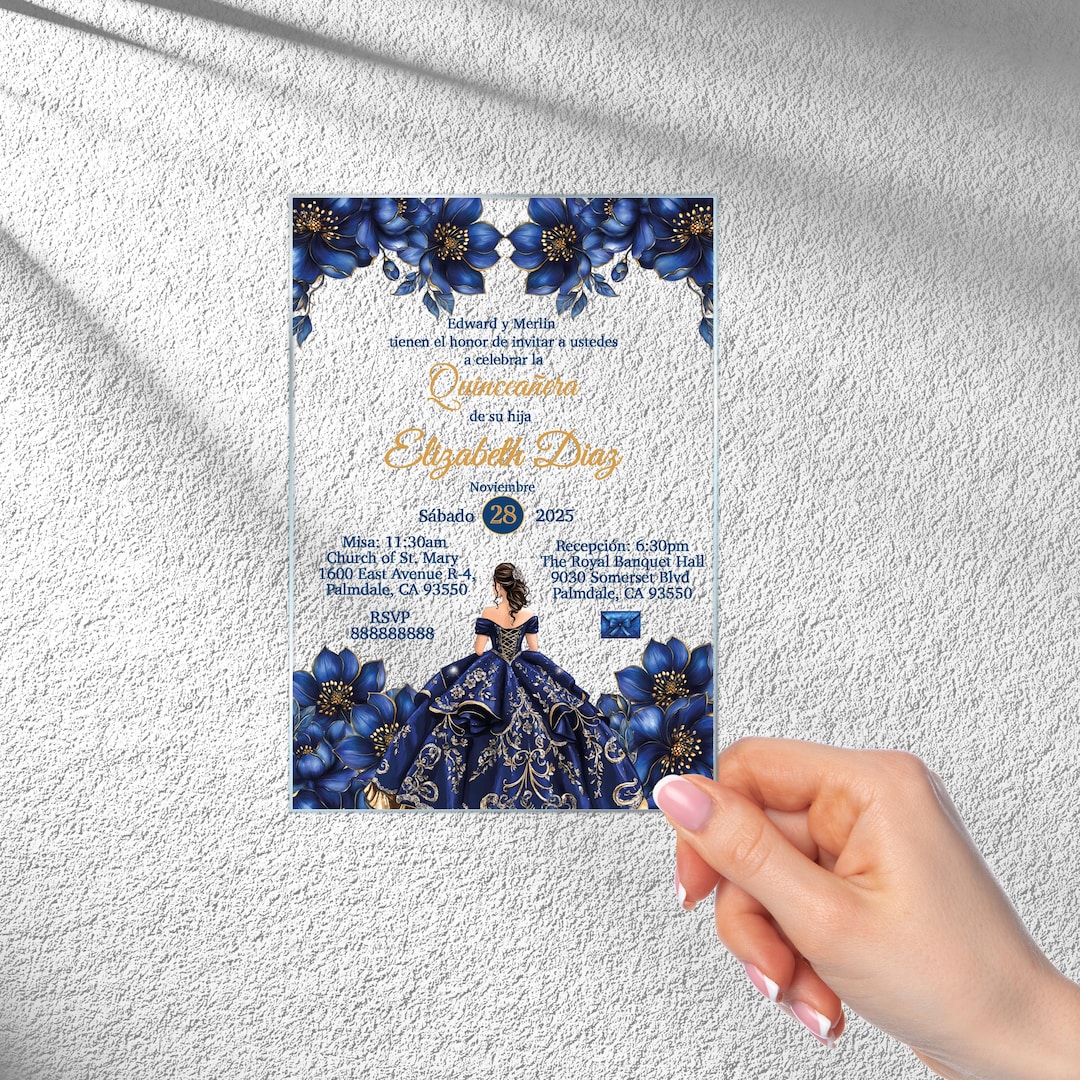Silver royal blue quinceanera invitation – Artofit