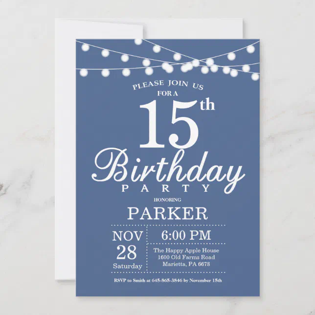 Blue Fifteen 15TH 15 Birthday Party Invitation | Zazzle