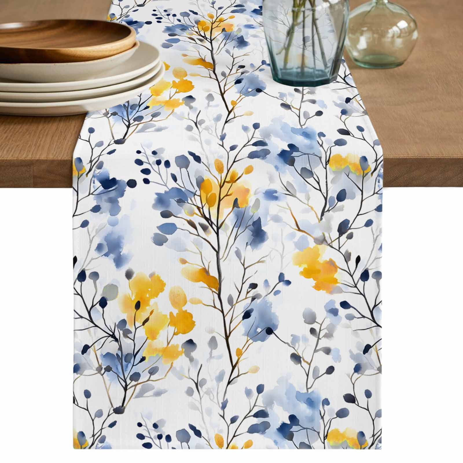 Blue Yellow Spring Floral Table Runner, Summer Botanical Abstract ...
