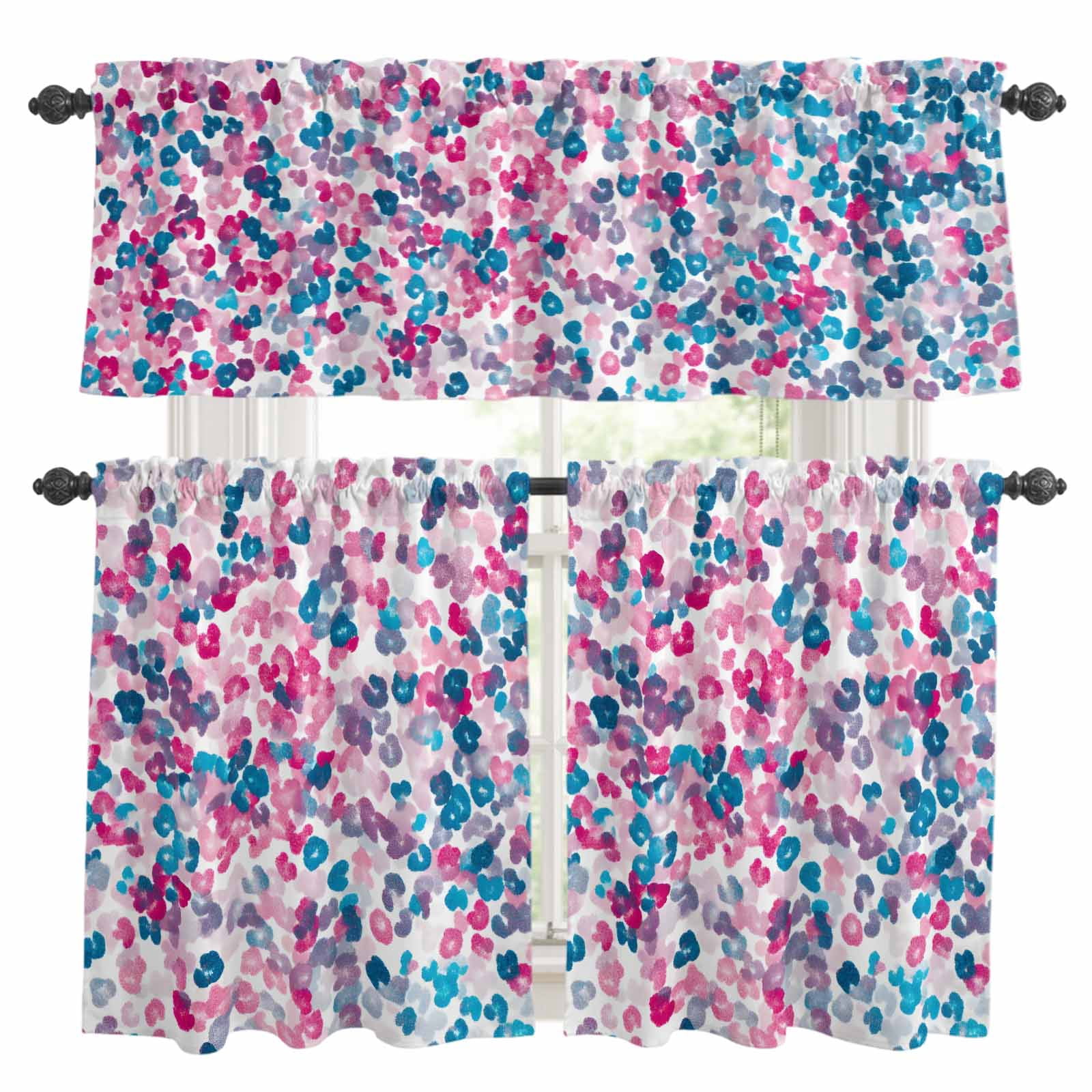 Colorful Floral Kitchen Curtains Valance and Tier Set Spring Abstract ...