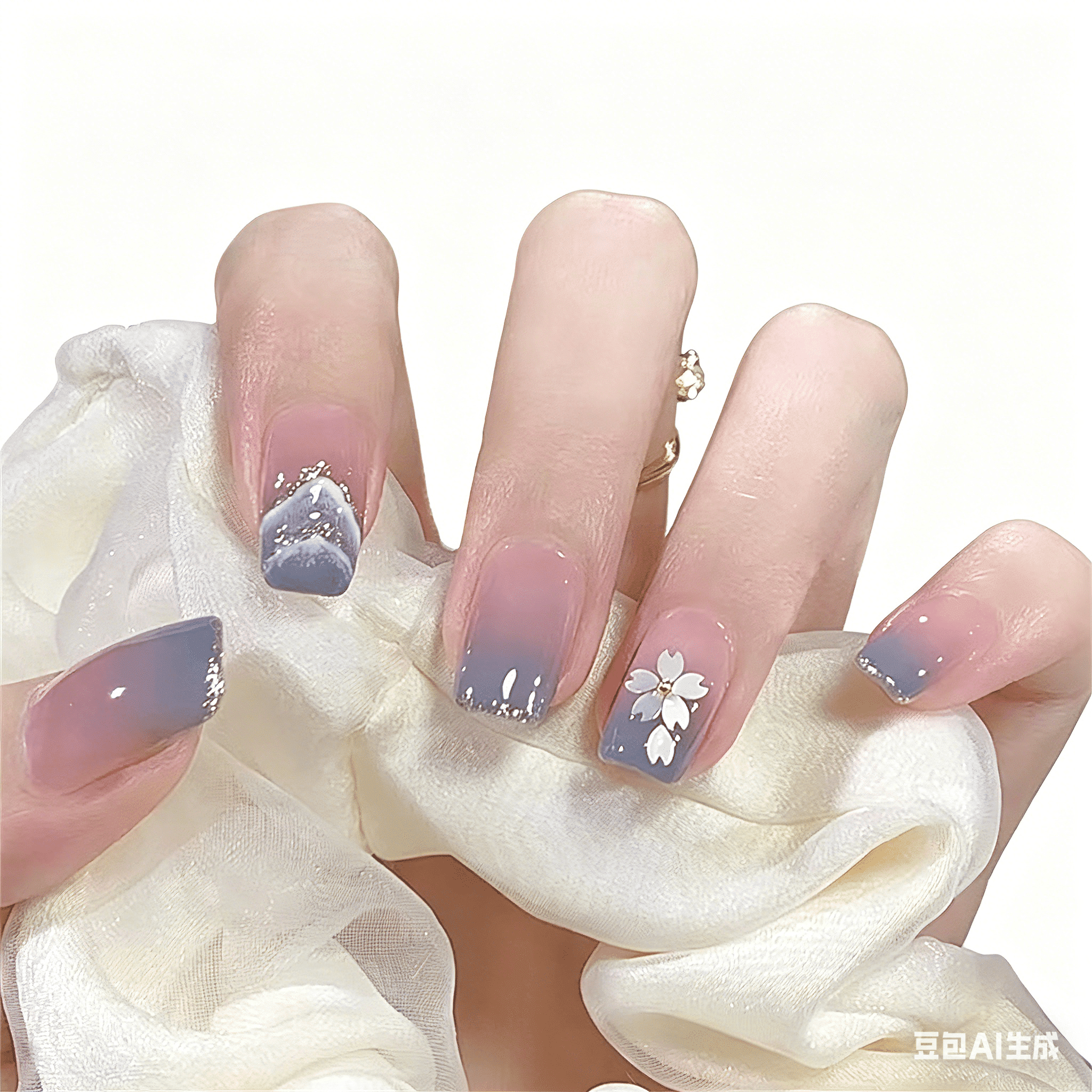96Pcs 4 Box Manicure Nail Tips, Blue Pink Ombre Press On Nails With ...