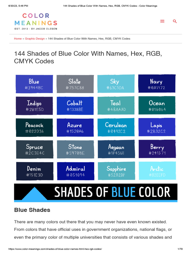 100+ Shades of Blue Color (Names, HEX, RGB, & CMYK Codes) – CreativeBooster