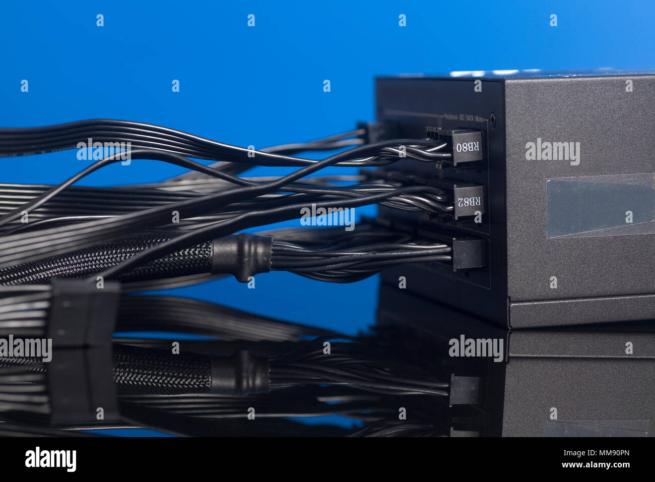 Computer Power Supply Unit with cable on blue background Stock Photo ...