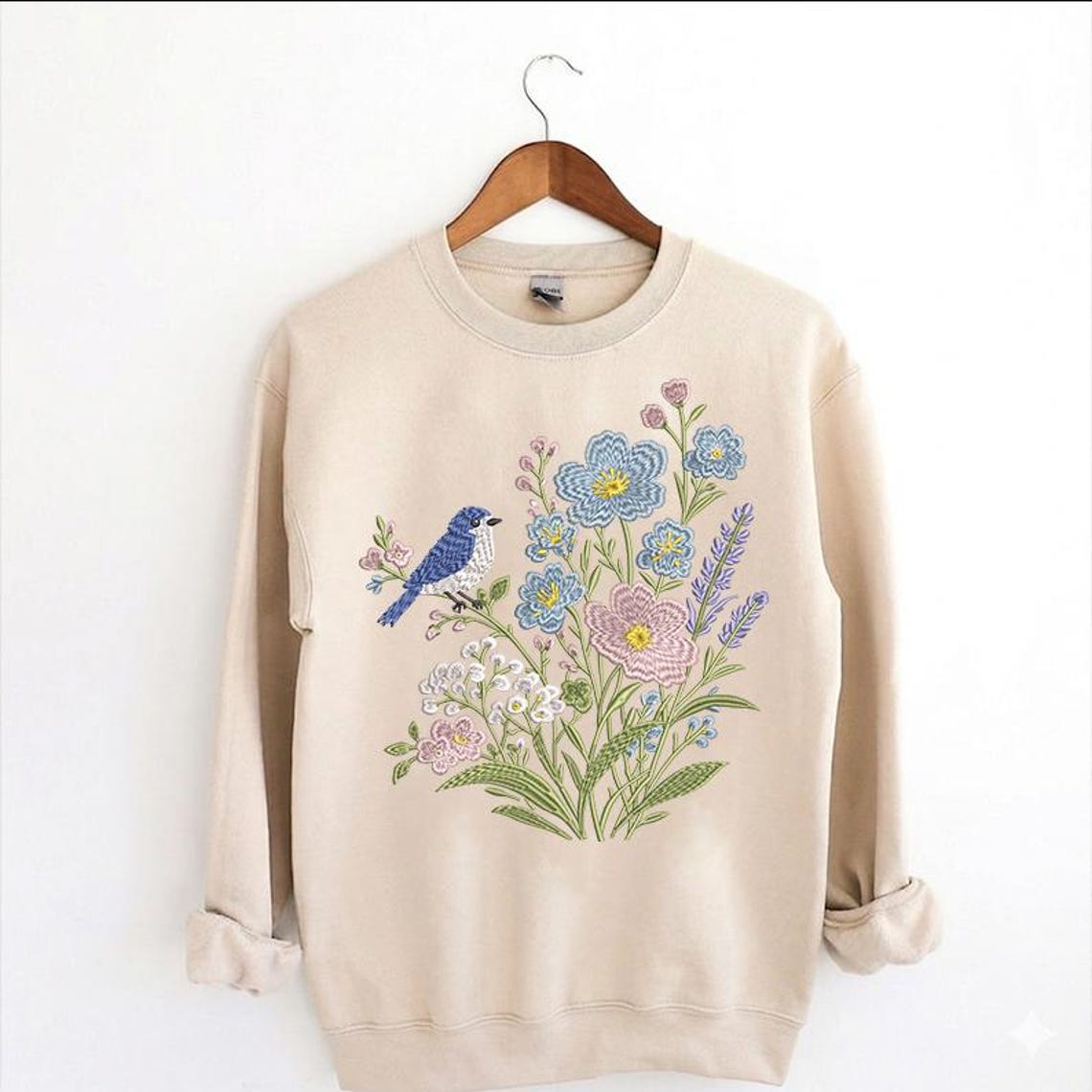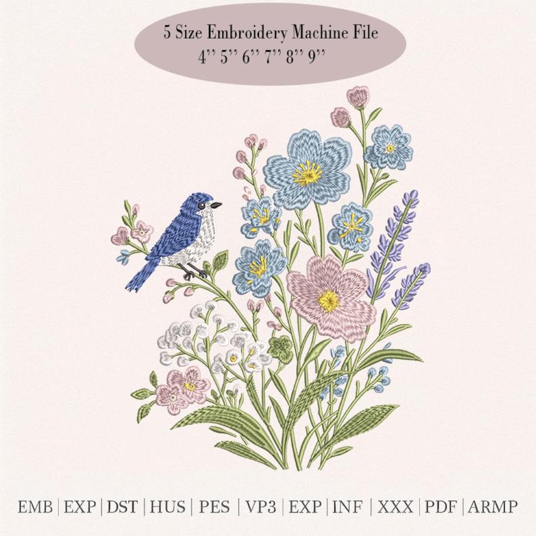 Blue Bird Floral Embroidery Design, Meadow Machine Pattern (digital ...