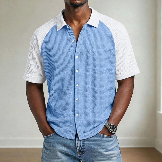 Men's Shirt Waffle Shirt Texture Casual Shirt Button Up Shirt Light ...