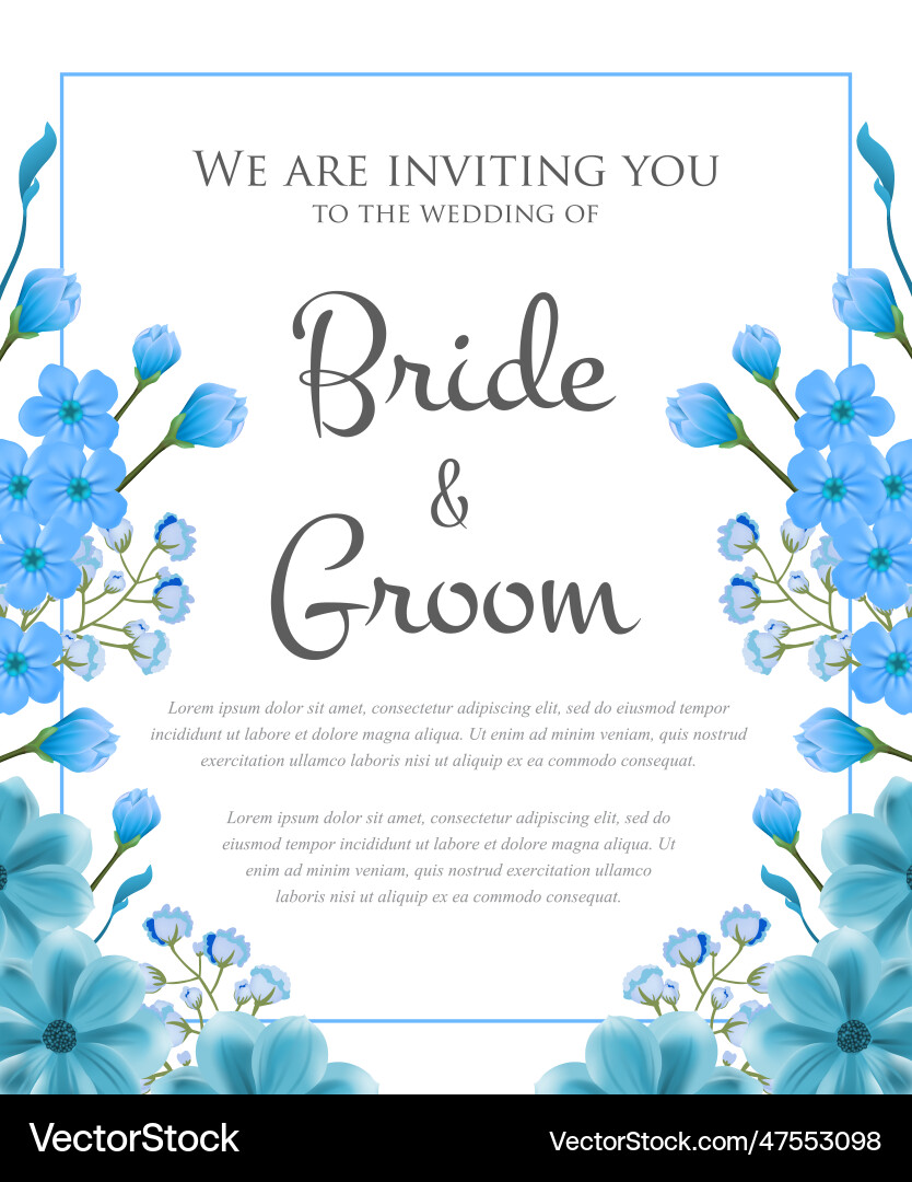Wedding invitation design with blue frame and Vector Image