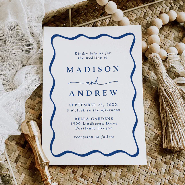 Modern Blue Wavy Frame Wedding Invitation | Zazzle