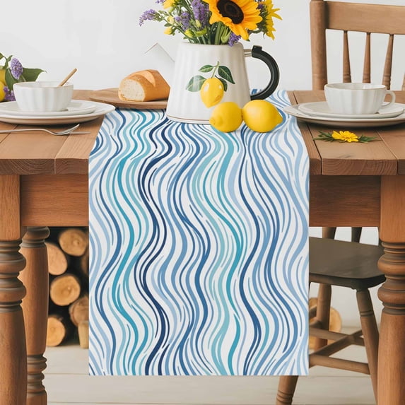 Blue Green Wave Line Table Runner 13x72 Inch Abstract Navy Line Modern ...