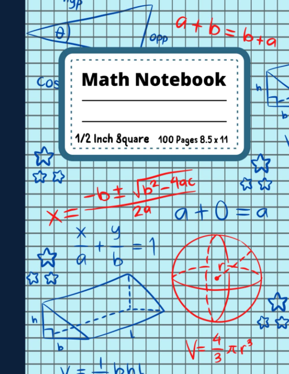 Math Notebook: Graph Paper 1/2 Inch Squares For Kids | Blue Grid ...
