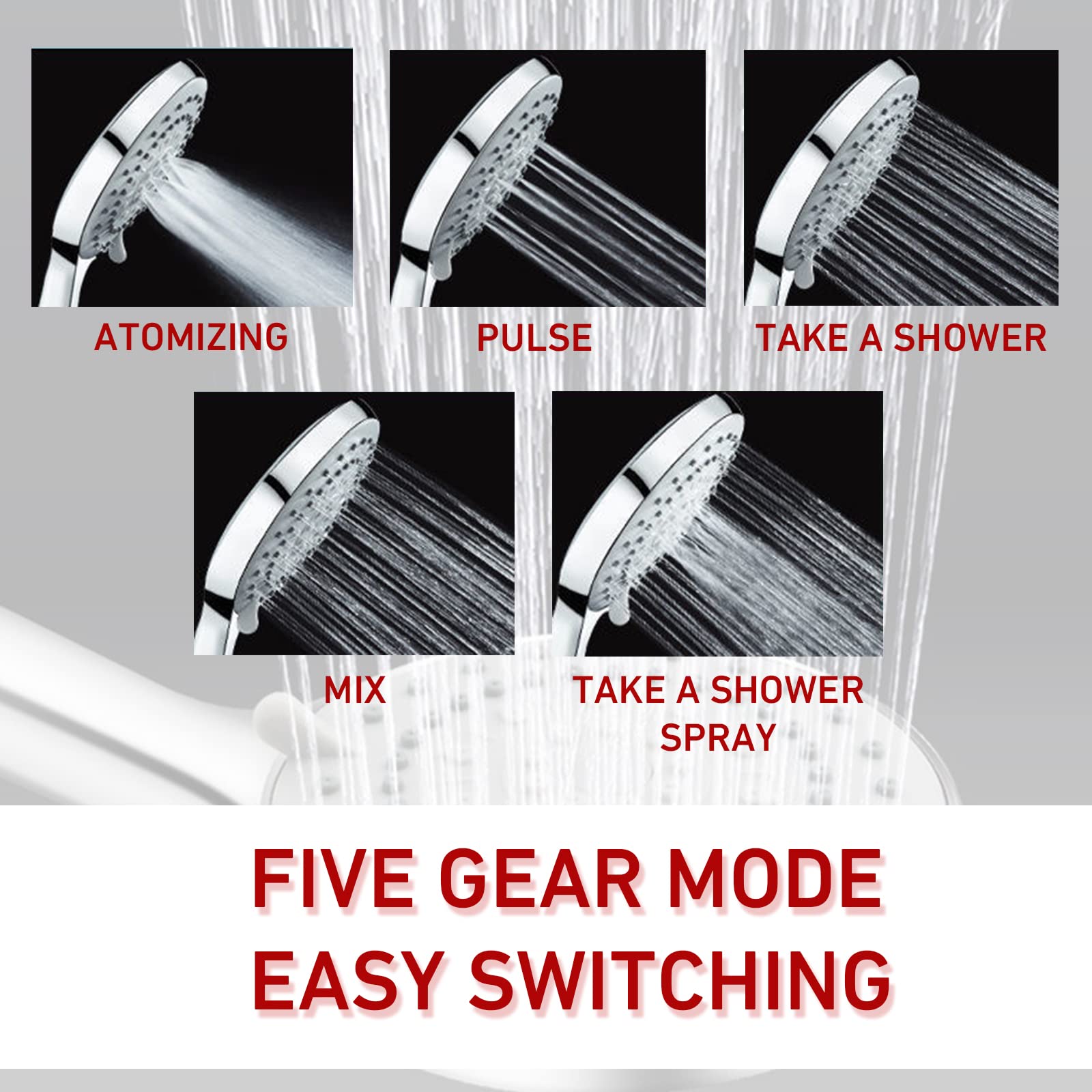Water Saving Led Shower Head 5-Function With Handheld – Includes 78 ...